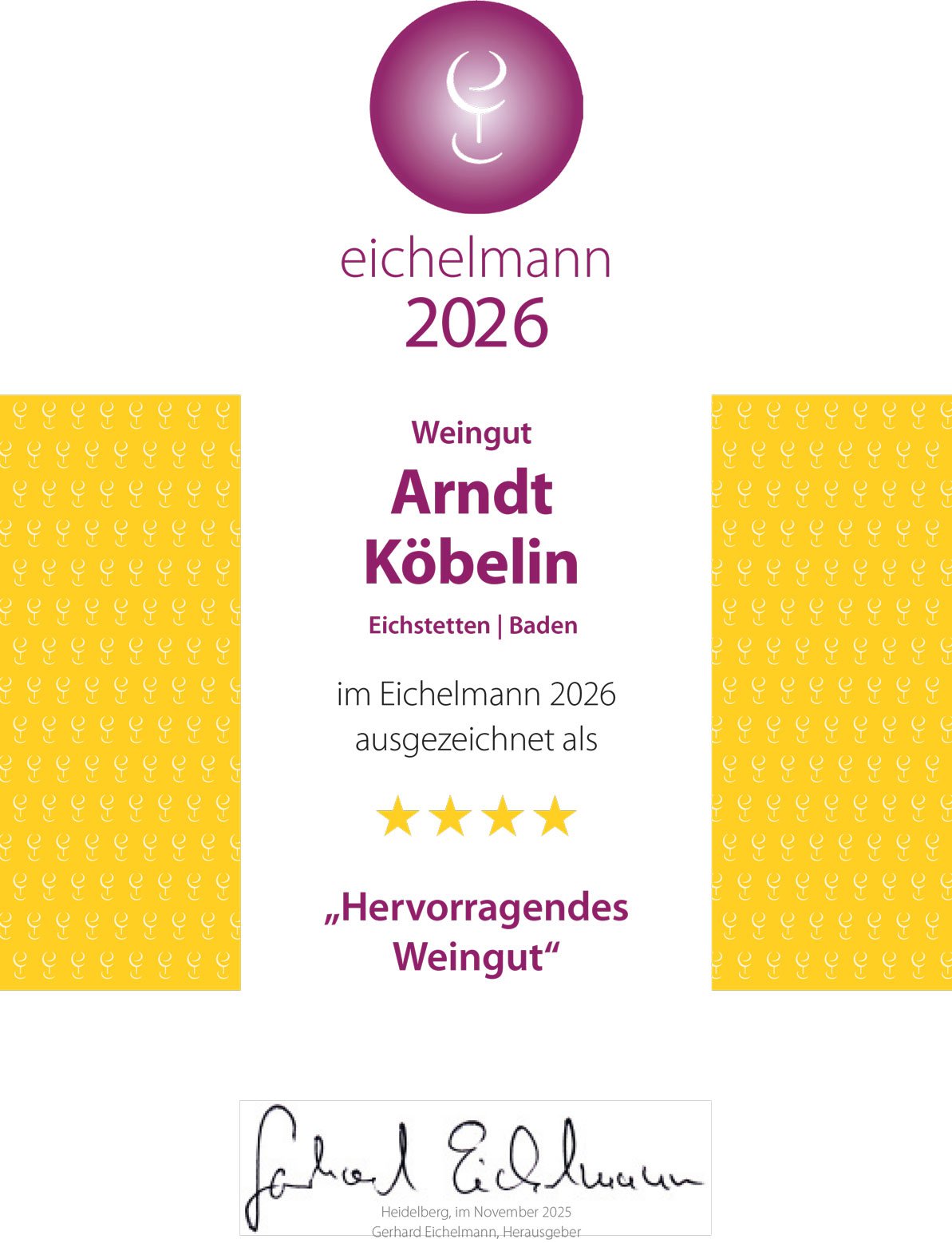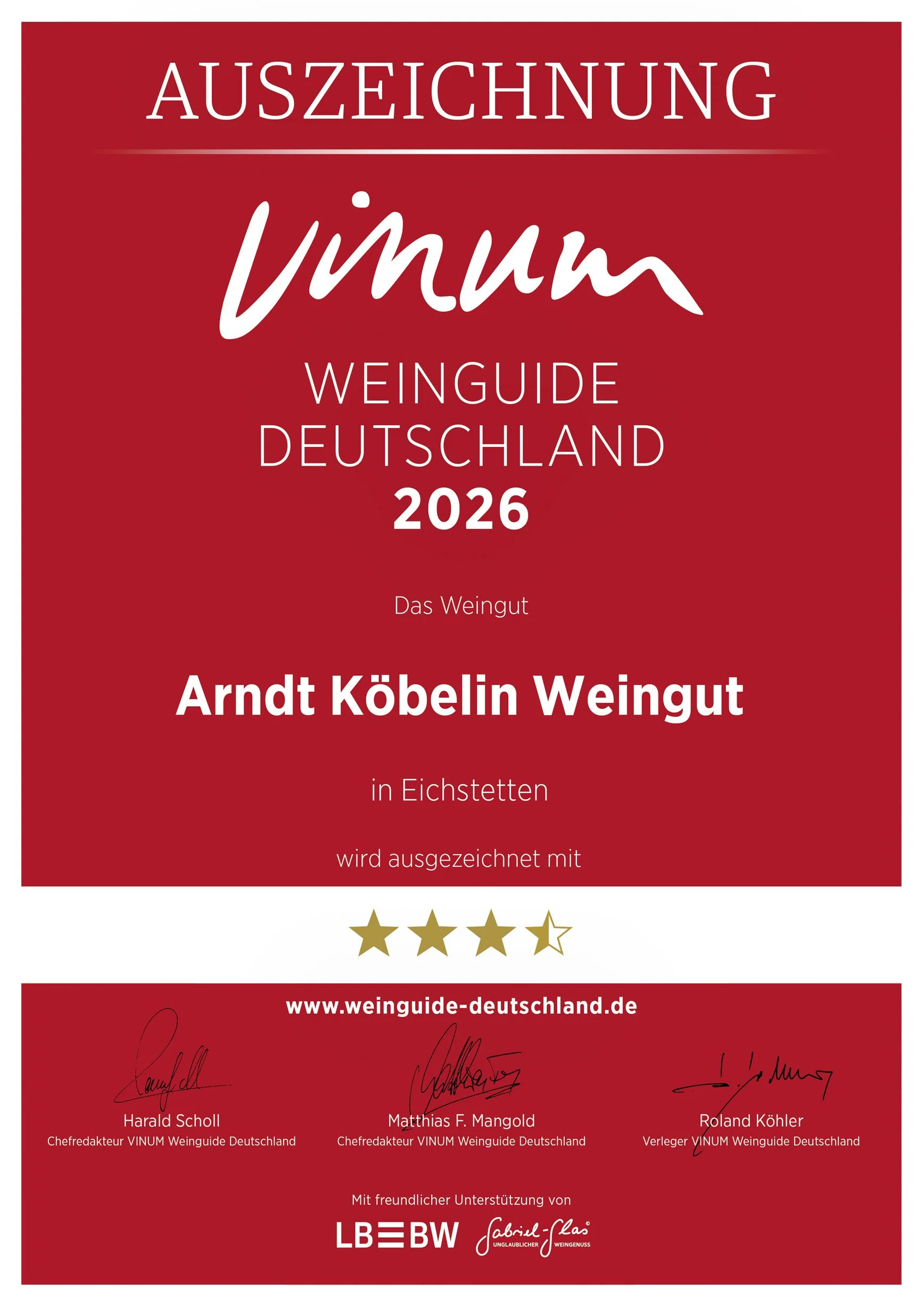 “Arndt Köbelin zeigt in seinen Weinen eine ungemein klare Idee und Richtschnur… alle Gutsweine sind extrem preis- und empfehlenswert.